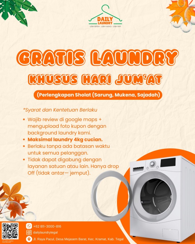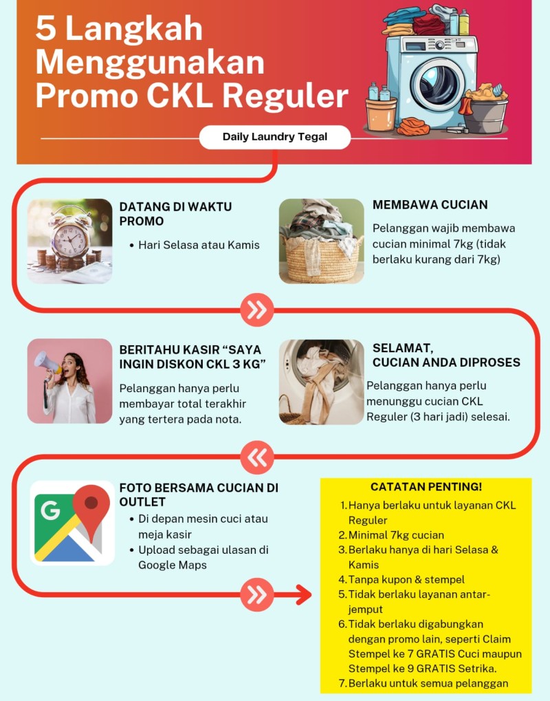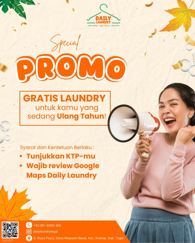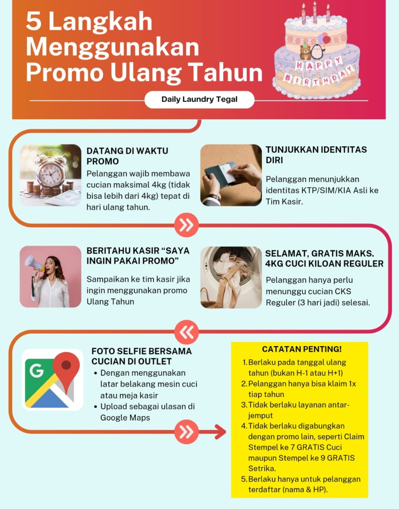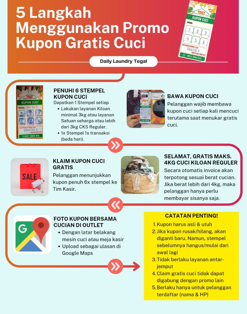 Silakan dibaca dengan seksama detail Syarat dan Ketentuan untuk mendapatkan promo Laundry Gratis berikut ini
